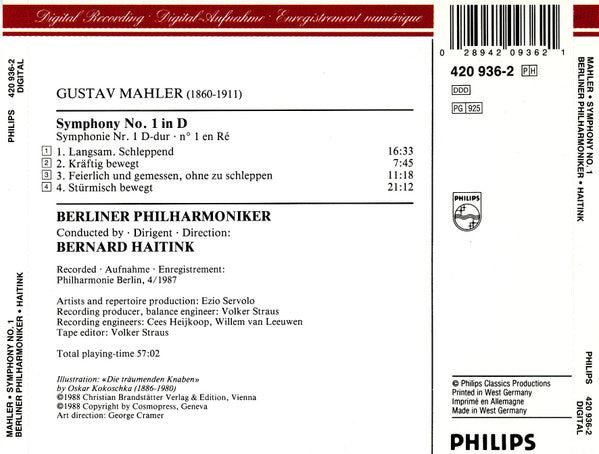 Gustav Mahler, Berliner Philharmoniker, Bernard Haitink - Symphony No. 1 (CD, Album, PDO)
