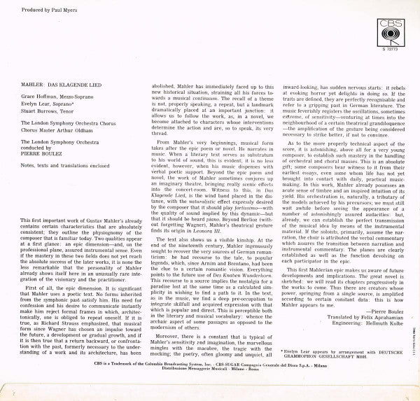 Gustav Mahler, London Symphony Orchestra Conducted By Pierre Boulez, Grace Hoffman, Evelyn Lear, Stuart Burrows, Arthur Oldham - Das Klagende Lied (LP, Album)
