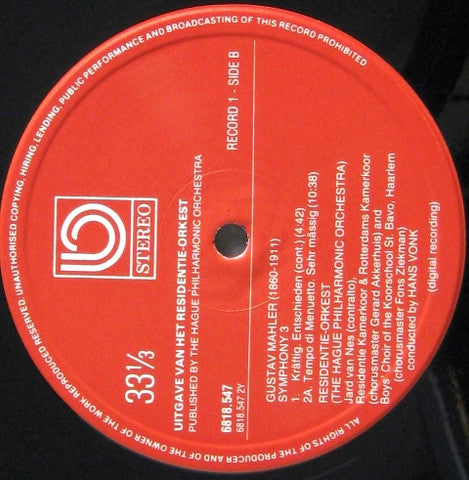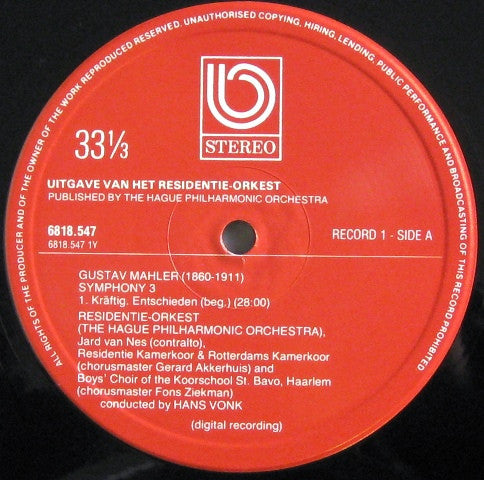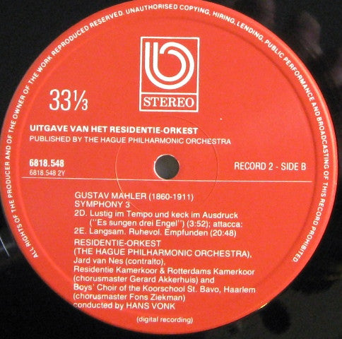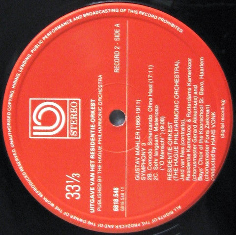 Gustav Mahler, Residentie Orkest, Hans Vonk, Jard Van Nes - Symphony 3 (2xLP)