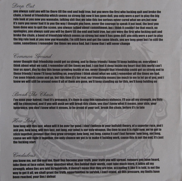Folded sleeve features lyrics and photos printed inside.