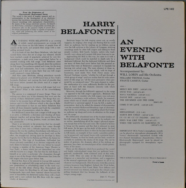 A1. Merci Bon Dieu 2:52 A2. Once Was 4:40 A3. Hava Nageela 3:11 A4. Danny Boy 5:49 A5. The Drummer And The Cook (Cockney Air) 3:55 A6. Come O My Love 4:25 B1. Shenandoah 3:43 B2. Mary's Boy Child 4:18 B3. Cu Cu Ru Cu Cu Paloma 5:27 B4. Eden Was Just Like This 2:57 B5. When The Saints Go Marching In 3:39