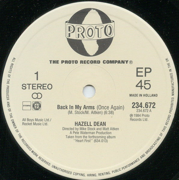 A. Back In My Arms (Once Again) (Dance Mix) 6:38B. Take Me Home 3:18