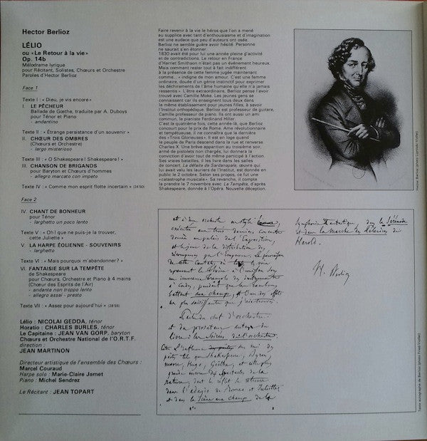 Hector Berlioz, Orchestre National De L'ORTF, Jean Martinon, Jean Topart - Lelio Ou Le Retour À La Vie (LP, Gat)