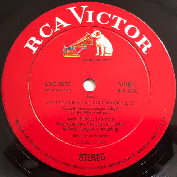 LSC-2652 on front cover & labels. "RE" is added on the rear cover. Repress on red label with RCA Red Seal in white and a white unshaded dog. Groove in label in contrast to [r13334757 Recorded in England © 1963, RCA, New York, N.Y. • Printed in U.S.A. Printed in U.S.A. Made in U.S.A.