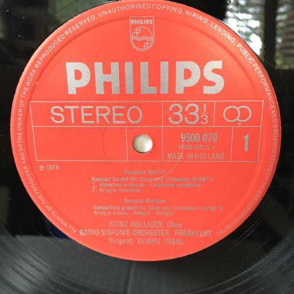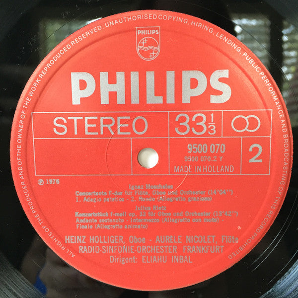 Heinz Holliger And Aurèle Nicolet, Radio-Sinfonie-Orchester Frankfurt, Eliahu Inbal - Heinz Holliger And Aurèle Nicolet Play Oboe And Flute Works By Bellini, Molique, Moscheles, & Rietz (LP)