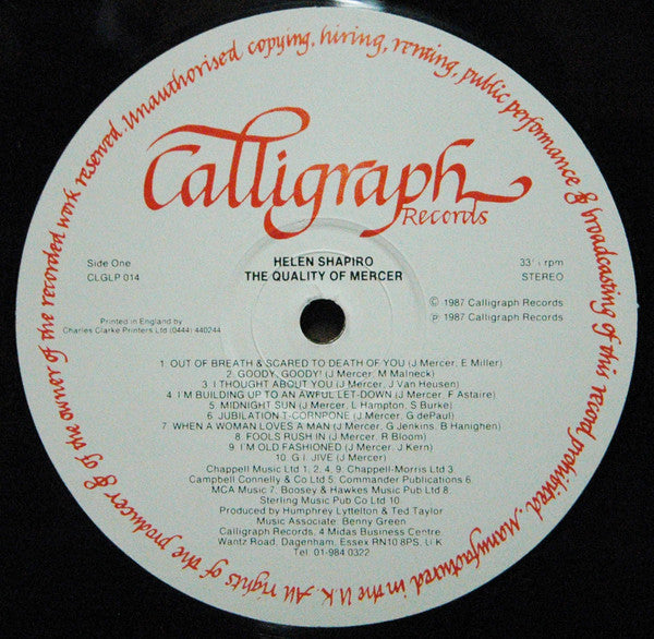 B10. Medley: Lazybones / Glow-Worm / Too Marvellous For Words / You Must Have Been A Beautiful Baby / That Old Black Magic / Come Rain Or Come Shine / Ac-Cent-Tchu-Ate The Positive / I Remember You / Hooray For Hollywood / Dearly Beloved / Dream / Spring, Spring, Spring / Blues In The Night / Moon River / Charade / The Days Of Wine And Roses / Something's Gotta Give / Day In, Day Out