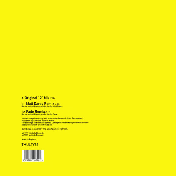 Written & Produced @ Other Productions. Distributed in the UK by The Entertainment Network. (p) 1999 Multiply Records (c) 1999 Multiply Records Made in England.