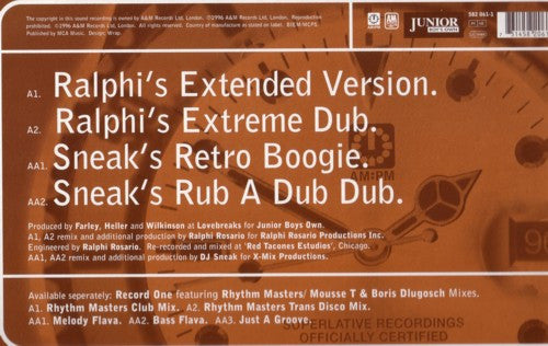 Record Two of a Two Record Set. Produced by Farley, Heller, Wilkinson at Lovebreaks. A1, A2 - Engineered by Ralphi Rosario. Re-recorded and mixed at Red Tacones Estudios, Chicago.