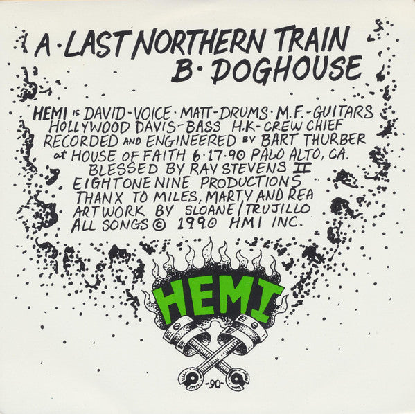 Members, 'Matt' (Matt Etheridge), M.F. (Michael Fox) and 'Ray Stevens II" (mentioned on pic sleeve) were members of Drunk Injuns.