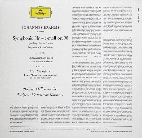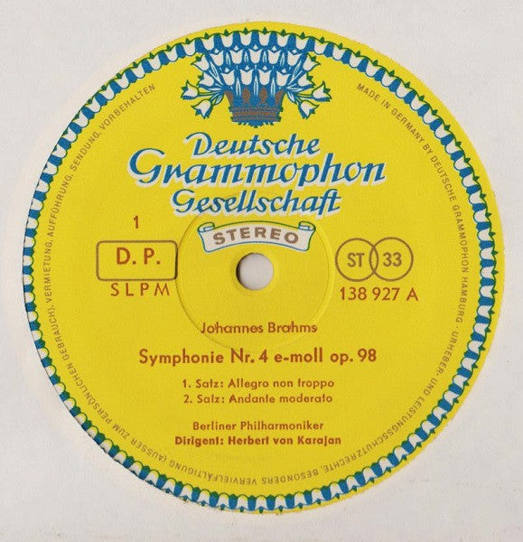 Johannes Brahms, Herbert von Karajan, Berliner Philharmoniker - Symphonie Nr. 4 (LP, RP, GY7)