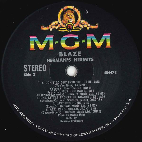 Sleeve: Manufactured by MGM Records Division, Metro-Goldwyn-Mayer Inc.