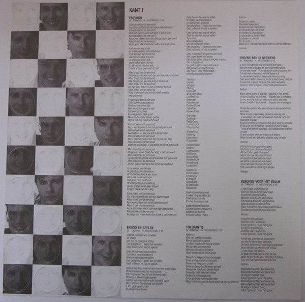 Comes with printed insert with lyrics. Attached is a cardboard with removable pieces (heads) to play checkers with on the sleeve.