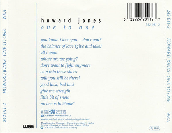 © 1986 WEA Records Ltd.