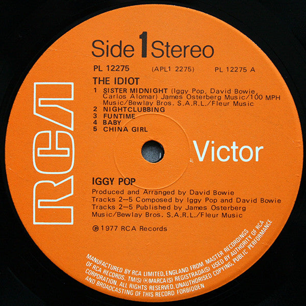 Matrix / Runout PL 12275 - 1 - A SIDE (IGGY POP) A|V Ʊ