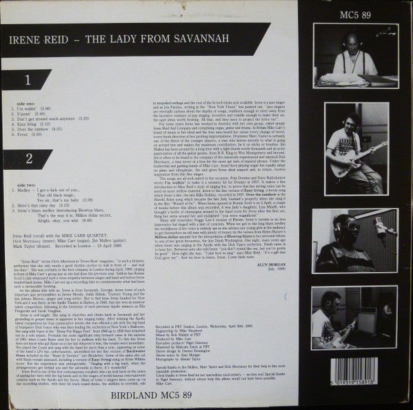 A1. I'm Walkin' 3:06 A2. Sposin' 2:40 A3. Don't Get Around Much Anymore 3:20 A4. Easy Living 2:12 A5. Over The Rainbow 4:01 A6. Fever 3:50 B1. Medley: I Get A Kick Out Of You/That Old Black Magic/Yes Sir, That's My Baby 3:59 B2. Here's That Rainy Day 3:23 B3. Irene's Blues Medley: Introducing Blowtop Blues, That's The Way It Is / Million Dollar Secret / Alright, Okay You Win 9:46