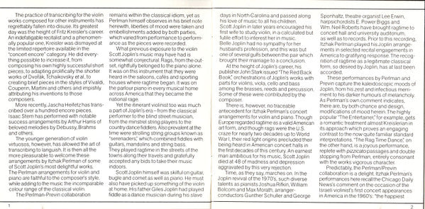 And Other Rag-Time Music of Scott Joplin arranged for violin and piano by Itzhak Perlman. Made in West Germany.