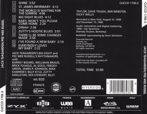 Jack Teagarden And His Big Eight / Pee Wee Russell Rhythmakers - Jack Teagarden's Big Eight / Pee Wee Russell's Rhythmakers (CD, Comp, RE)