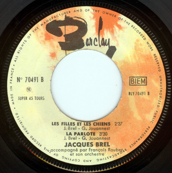 A1. Les Bigotes 2:40 A2. Quand Maman Reviendra 3:45 B1. Les Filles Et Les Chiens 2:55 B2. La Parlote 3:25