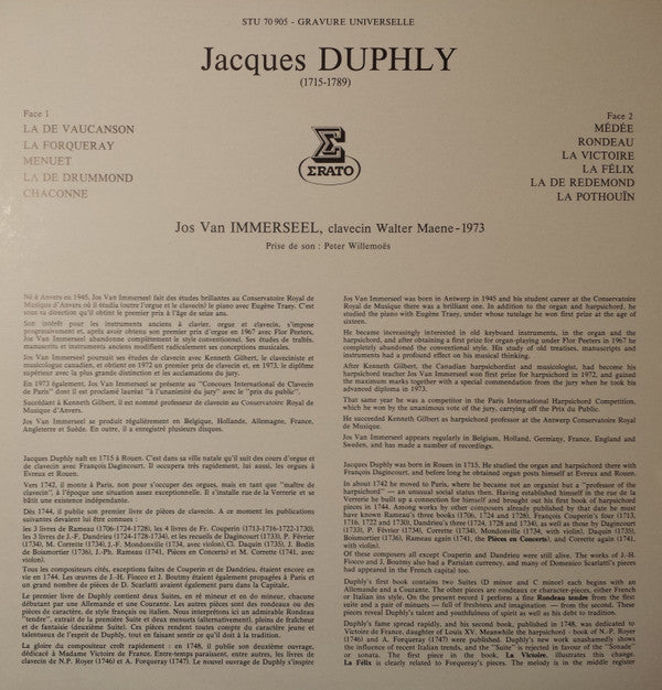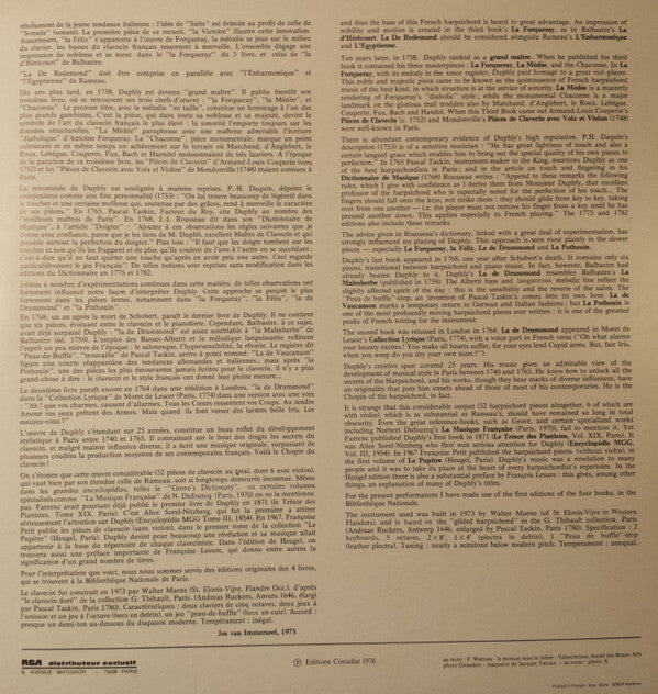 1.1. La De Vaucanson 1.2. La Forqueray 1.3. Menuet 1.4. La De Drummond 1.5. Chaconne 2.1. Médée 2.2. Rondeau 2.3. La Victoire 2.4. La Félix 2.5. La De Redemond 2.6. La Pothouïn