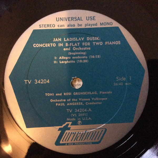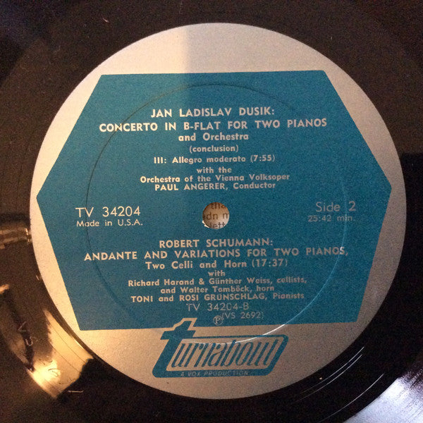 Jan Ladislav Dusík, Robert Schumann, Toni Grünschlag And Rosi Grünschlag - Concerto In B Flat For 2 Pianos & Orchestra / Andante & Variations For 2 Pianos, 2 Cellos (LP)