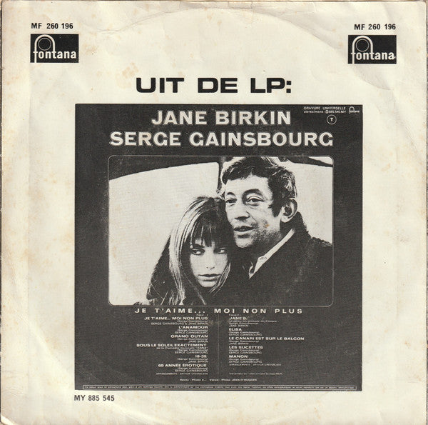Uit De LP: Jane Birkin & Serge Gainsbourg MY 885 545