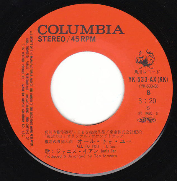 Janis Ian - ユー・アー・ラブ (復活の日のテーマ Virus) (7", Single)