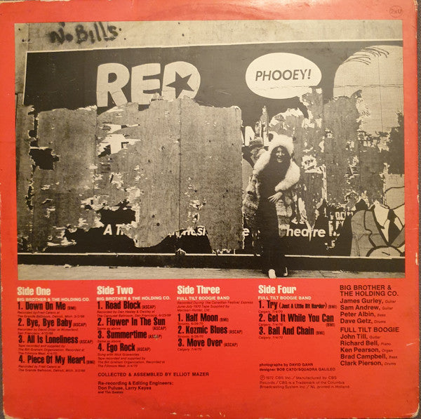 Comes in two same promotional CBS paper inner-sleeves. Recording Dates: A1, A4 - The Grande Ballroom, Detroit, Mich., 3/2/'68. A2 - Winterland, San Francisco, 4/12/'68. A3, B1 to B3 - The Carousel Ballroom, San Francisco, 6/23/'68. B4 - The Fillmore West, 4/4/'70. C1, C2 - Toronto, 6/28/'70. C3 to D3 - Calgary, 7/4/'70. Gatefold sleeve. NL printed in Holland Design by Bob Cato/Squadra Galileo. A4 publisher is misspelled as "Webb IV Music, Inc." on label A On labels: ℗ 1972 CBS, Inc. Made in Holland