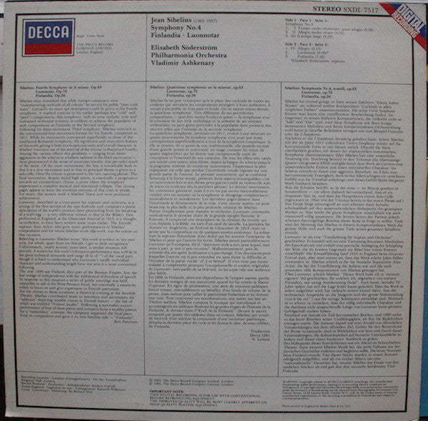 Includes one sided lyric insert for Luonnotar.