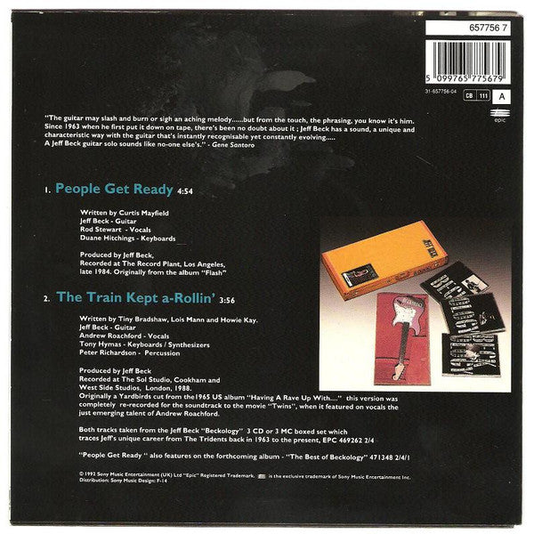 Both tracks taken from the Jeff Beck 311815 3CD or 3MC boxed set. [Back cover (A) Originally from the LP 93817 Recorded late 1984 at The Record Plant, Los Angeles, Warner Chappell Music Ltd. (B) Re-recorded for 225190 at The Sol Studio, Cookham and West Side Studios, London, 1988, © 1992 Sony Music Entertainment (UK) Ltd. Distribution: Sony Music [Labels Rim text: Made in Holland Side A: ℗ 1985 Sony Music Entertainment Inc. Side B: ℗ 1988 Sony Music Entertainment Inc. [Publishers, record labels Side A: Warner Chappell Music Ltd. Side B: Peter Maurice Music Co. Ltd. / EMI [Runout The runouts are stamped except for the "A" which is etched