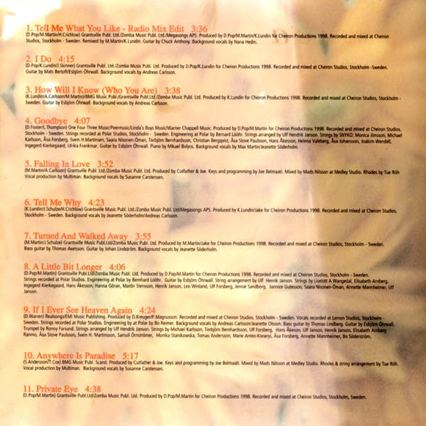 Track 1 is listed as “Tell Me What You Like (Radio Edit)” on back insert.