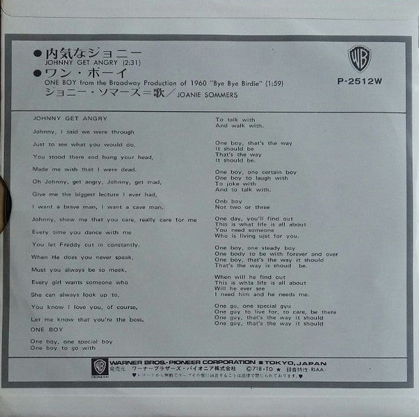 Japanese issue with picture sleeve, lyrics printed on reverse.