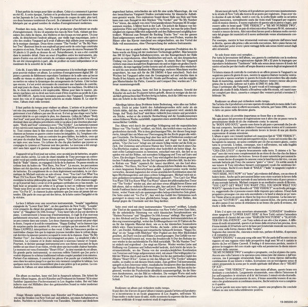 A1. The Verdict 5:31 A2. Cha Cha Loco 4:47 A3. Not Here, Not Now 5:27 A4. You Can't Get What You Want (Till You Know What You Want) 4:50 A5. Go For It 4:18 B1. Loisaida 5:33 B2. Happy Ending 3:39 B3. Be My Number Two 4:18 B4. Heart Of Ice 6:53