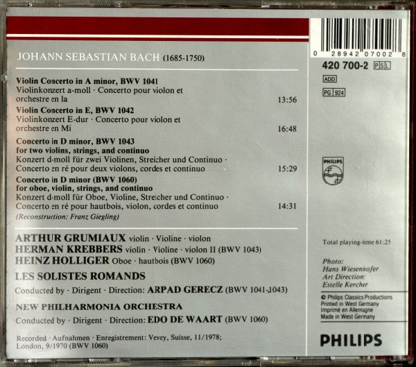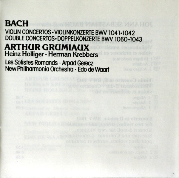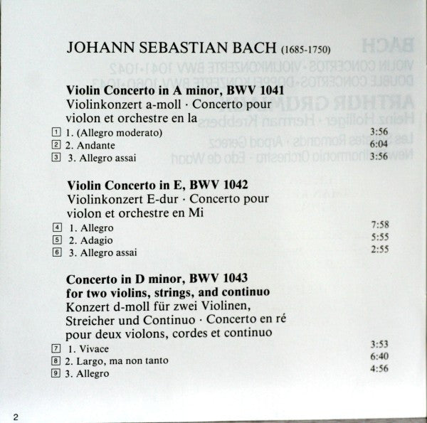 . Violin Concerto In E, BWV 1042 = Violinkonzert E-Dur = Concerto Pour Violon Et Orchestre En Mi