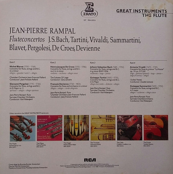 The gate-fold sleeve containing the 2 LP's have notes on the inside about the series 'Great Instruments' in English only.