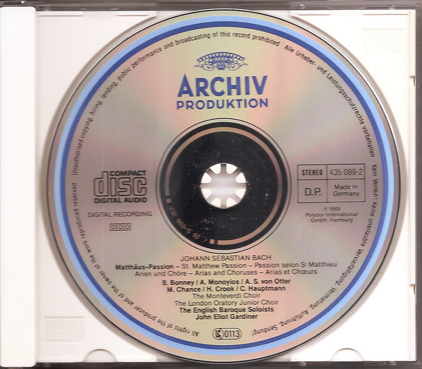 CD 9 of 10 part of a Box Set (barcode 028973508025) with a 52 page booklet. Title "Johan Sebastian Bach Compact Edition" 1982 from Archiv Produktion
