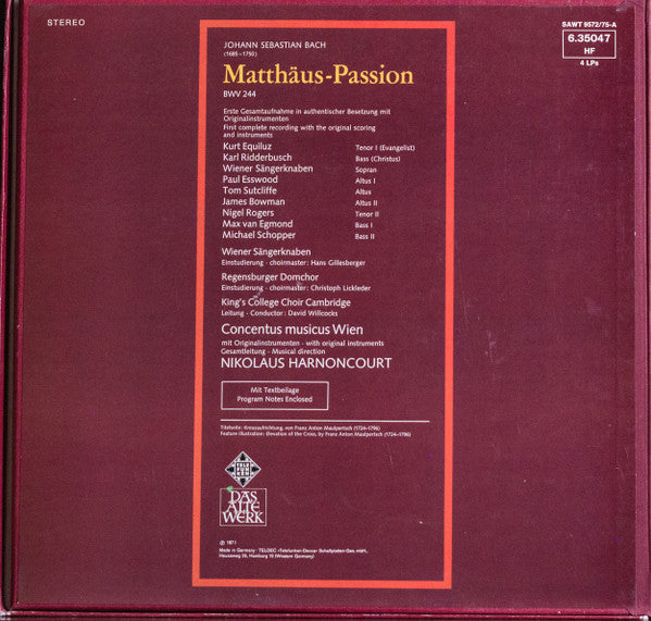 Johann Sebastian Bach - Matthäus-Passion (4xLP + Box, RP)