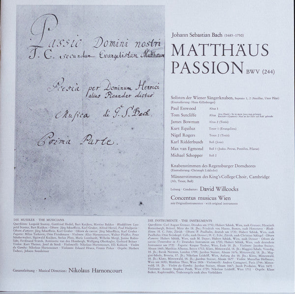 . Matthäus-Passion BWV 244 (Passio Domini Nostri J. C. Secundum Evangelistam Matthaeum)