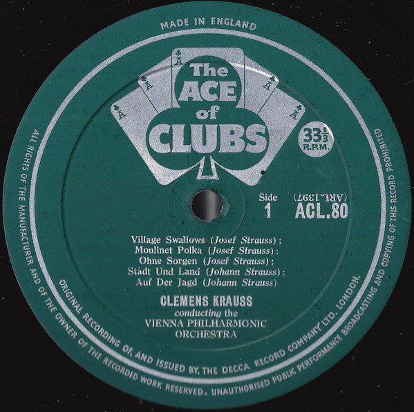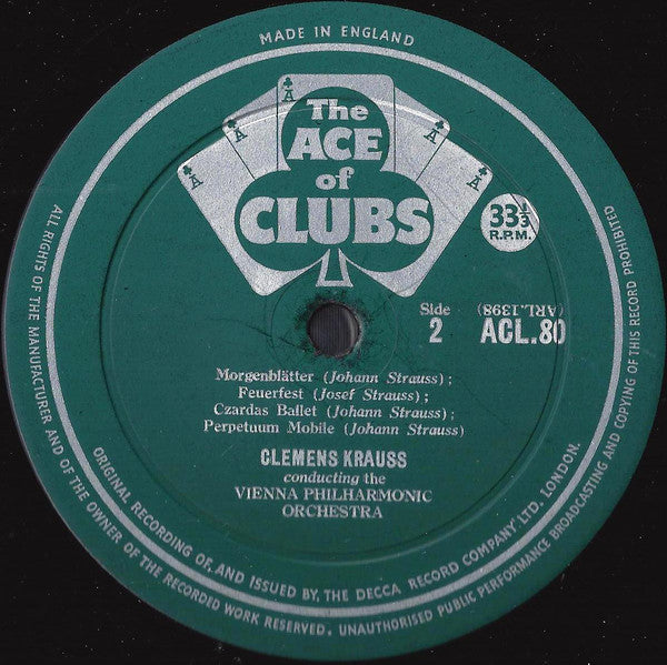 - "ORIGINAL RECORDING OF AND ISSUED BY THE DECCA RECORD COMPANY LTD. LONDON" around circumference anticlockwise from 8 o'clock to 4 o'clock