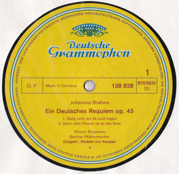 "BRAHMS . EIN DEUTSCHES REQUIEM . KARAJAN", record company label, "2 LP . STEREO" and cat# on spine.