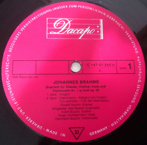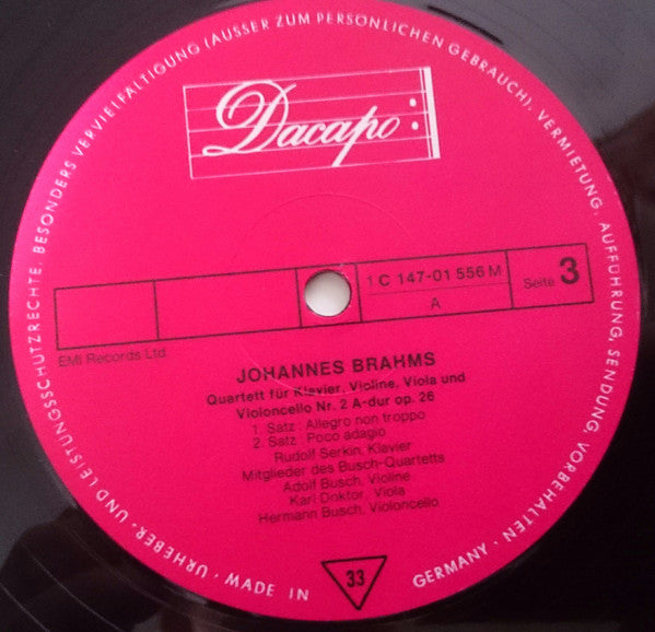 Johannes Brahms - The Busch Quartet / Rudolf Serkin
