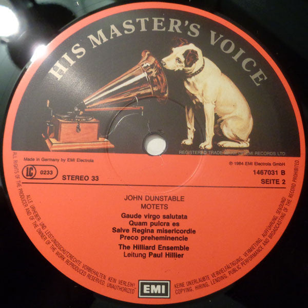 Record Company EMI Records Ltd. Phonographic Copyright (p) EMI Electrola GmbH Pressed By EMI Electrola GmbH Printed By 4P Nicolaus GMBH Recorded At Boxgrove Priory, Sussex