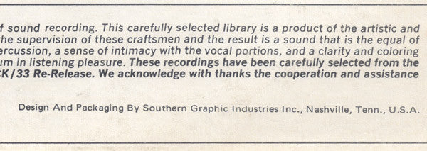 Artists on back cover: Johnny Cash, Jeannie C. Riley & Jerry Lee Lewis.