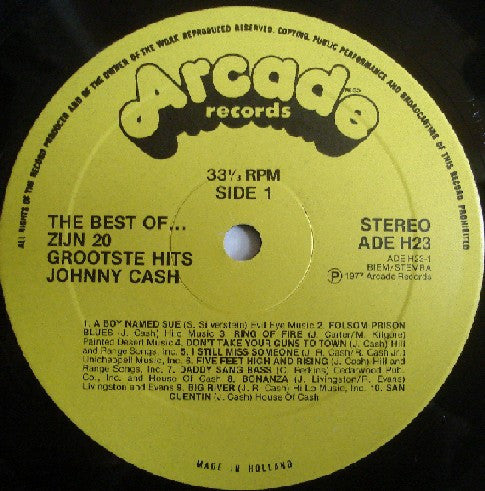 Catalog number appears as "ADE H23" on the center labels, "ADEH 23" on spine. [Labels ℗ 1977 Arcade records Made in Holland [Sleeve With special thaks to CBS.