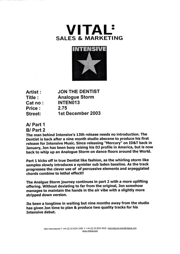 Issued in a generic, but stickered 'Intensive' sleeve with a promo sheet included.