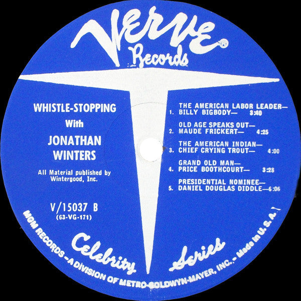 Jonathan's 8th LP on the Verve label. Recorded at the National Press Club in Washington D.C., U.S.A. Cover Photo - Wagner International Catalog Number V-15037 is found on the front & back of album jacket. Catalog Number V/15037 is found on the center labels.