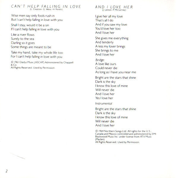 1. Can't Help Falling In Love