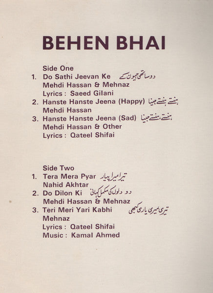 A3. Mehdi Hassan, "Behen Bhai" Other - Hanste Hanste Jeena (Sad)