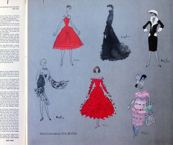 Original Broadway Cast recording of musical based on the life of designer Coco Chanel. Opened at the Mark Hellinger Theatre on December 18, 1969. Gatefold sleeve contains notes, synopsis & costume illustrations by Cecil Beaton.