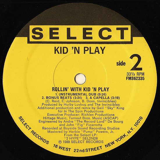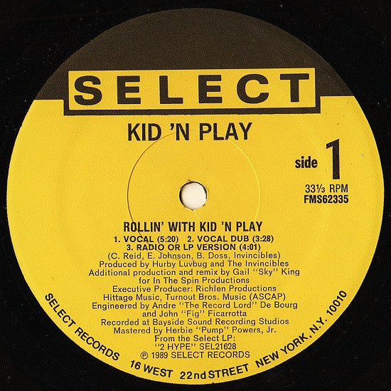 A1. Rollin' With Kid 'N Play (Vocal) 5:20 A2. Rollin' With Kid 'N Play (Vocal Dub) 3:28 A3. Rollin' With Kid 'N Play (LP Version) 4:01 B1. Rollin' With Kid 'N Play (Instrumental Dub) 5:24 B2. Rollin' With Kid 'N Play (Bonus Beats) 3:24 B3. Rollin' With Kid 'N Play (A Cappella) 3:19