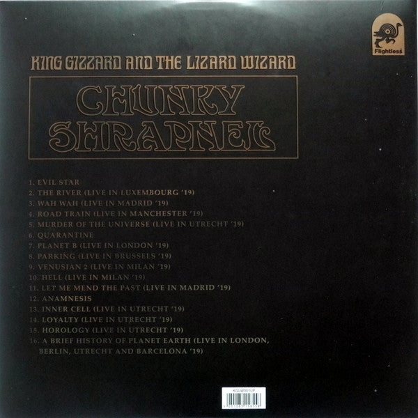 Housed in a gatefold jacket with spot matte and gloss printing, and comes with a removable spine card with gold foil lettering and Flightless logo.